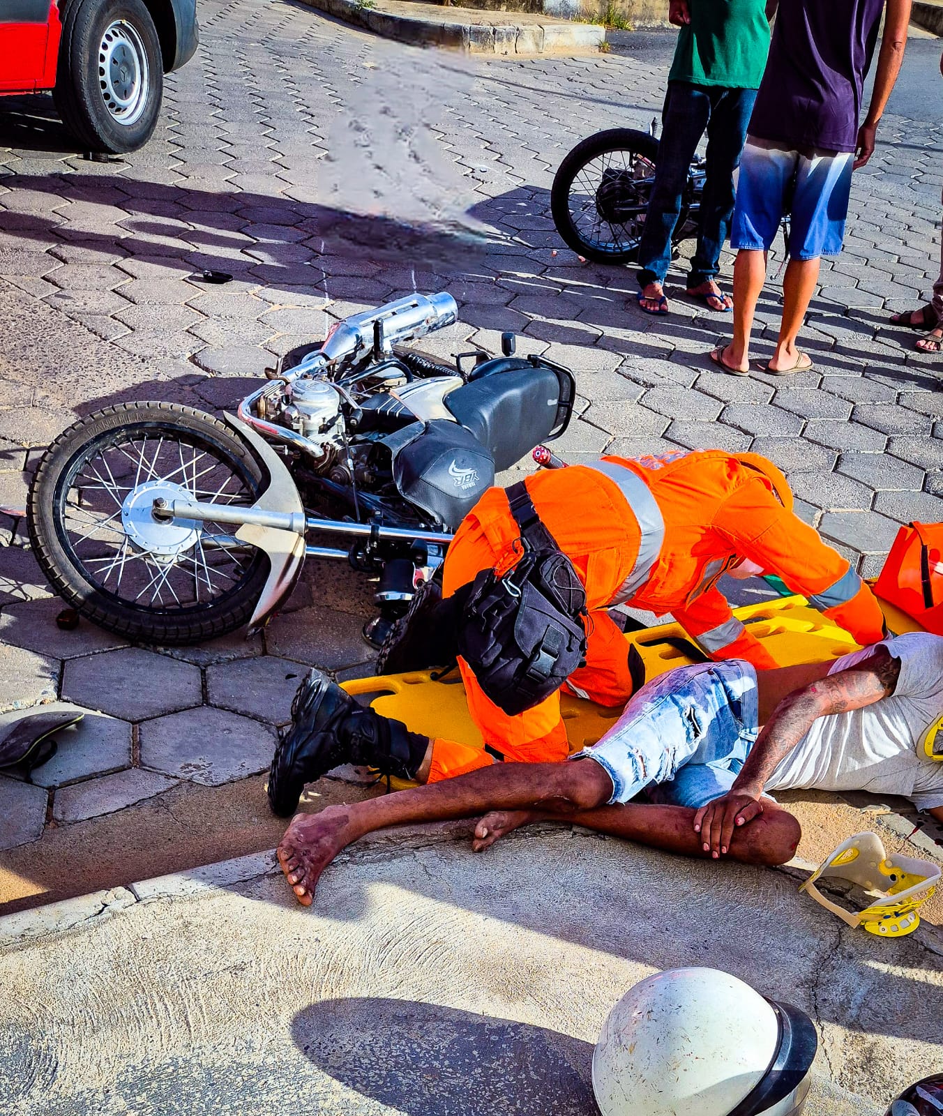 De imediato, uma guarnição de resgate deslocou-se até o local. Conforme relatos de testemunhas, as motocicletas trafegavam no sentido bairro–centro e colidiram ao atravessarem um cruzamento.